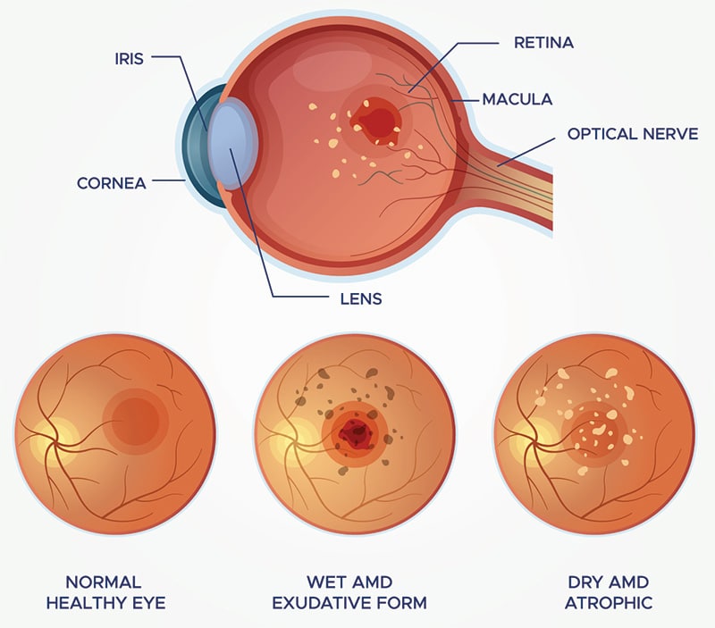 Age-related macular degeneration is the leading cause of severe vision loss in Caucasian adults age 65 and older. Macular degeneration medications is a deterioration of the macula, which is a small area in the retina in the back of the eye that allows a person to see fine details clearly. People with macular degeneration usually lose their central vision and may lose the ability to drive, read, and see objects straight ahead. Dr. Reena Patel offers diagnosis of macular degeneration in Wichita, KS, at Wichita Vision Institute.